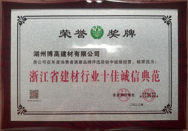 浙江省誠信經(jīng)營優(yōu)秀建材企業(yè)